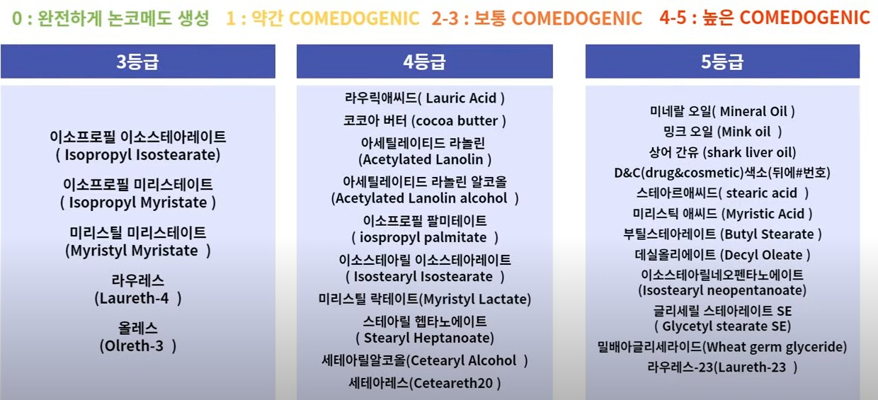 크게 흔히 사용되는 대표적인 성분으로 "이소프로필 이소스테알레이트", "이소프로필 미리스테이트"이 있는데요. 이 성분들은 화장품이 잘 녹을 수 있게 만드는 중요성분이지만 이런 성분이 포함된 제품은 모공을 막고 넓어지게 만드니 주의해서 사용하셔야겠습니다.